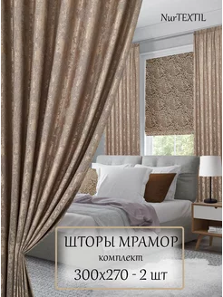 Шторы мрамор 300х270 см 2 шт в гостиную спальню на ленте