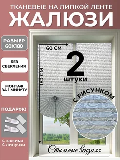 Жалюзи с рисунком самоклеящиеся тканевые на окна 60 180 2 шт