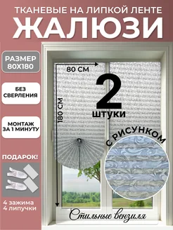 Жалюзи с рисунком самоклеящиеся тканевые на окна 80 180 2 шт