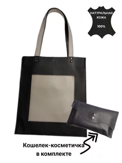 Кожаная сумка шоппер из натуральной кожи с кошельком