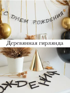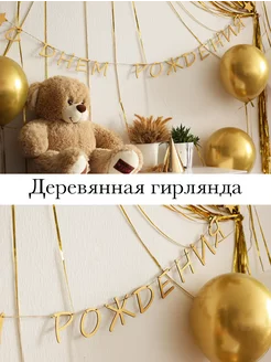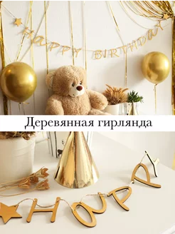 Деревянная растяжка Happy Birthday, золотая