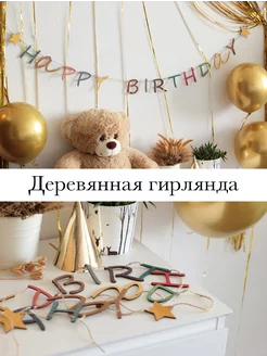 Деревянная растяжка Happy Birthday, разноцветная