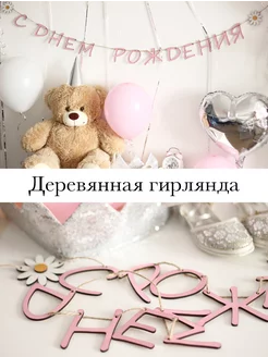 Деревянная растяжка С днем рождения, розовая
