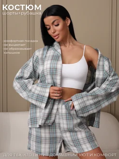 Костюм домашний с шортами и рубашкой в голубую клетку