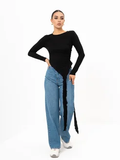 Облегающий лонгслив тонкий с рюшами