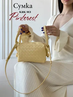Сумка плетеная на плечо кожаная лимонная Bottega Veneta