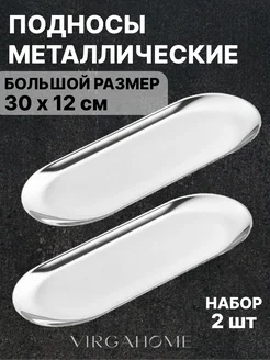 Поднос декоративный металлический серебряный, 30 см, 2 шт