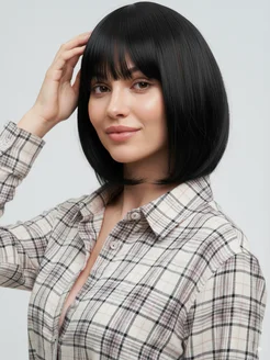 Парик женский черный каре с челкой
