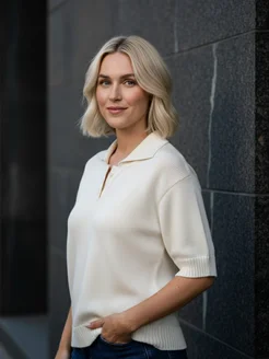 Футболка поло женское вязаное бежевое с коротким рукавом