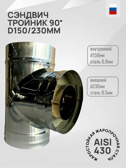 Сэндвич тройник <90 d150 230мм Aisi304-0.8мм