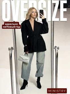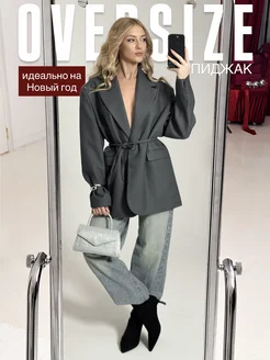 Пиджак оверсайз удлиненный с завязками приталенный с поясом