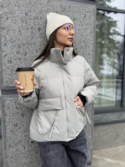Куртка демисезонная осенняя оверсайз короткая с капюшоном