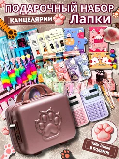 Канцелярский набор подарочный чемодан-бокс Лапки