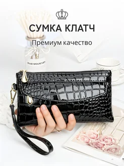 Кошелёк-клатч с ремешком на молнии женский кожаный