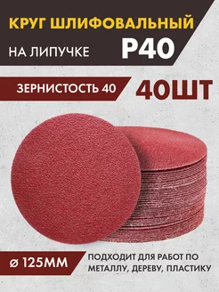 Шлифовальные круги на липучке 125 мм, Р40, 40 штук
