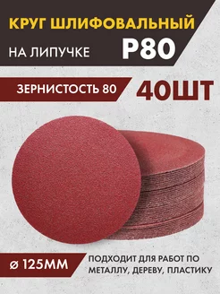 Шлифовальные круги на липучке 125 мм, Р80, 40 штук