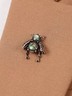Брошь-значок мушка, вставка галиотиса