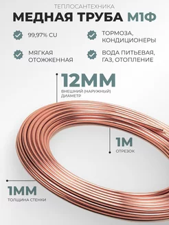 Медная труба М1ф (12,0 мм х 1,0 мм) 1 м