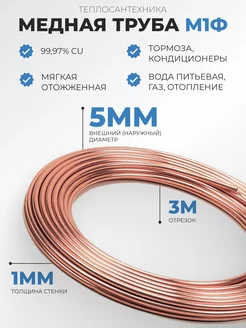 Медная труба М1ф (5,0 мм х 1 мм) 3 м