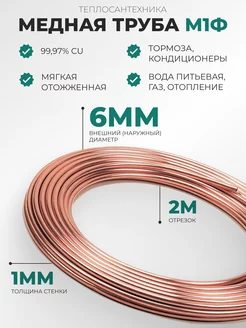 Медная труба М1ф (6,0 мм x 1,0 мм) 2 м
