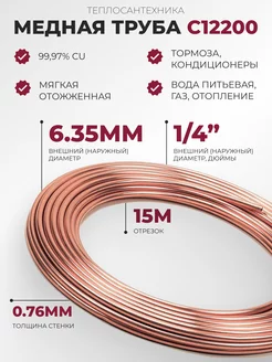Медная труба мягкая (6,35 мм х 0,76 мм) 1 4, 15 м