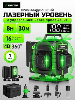 Лазерный уровень нивелир 4D Зеленый 16 лучей 2 АКБ