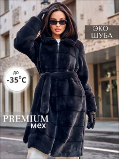 Шуба искусственная из экомеха Экошуба и капюшон осень зима