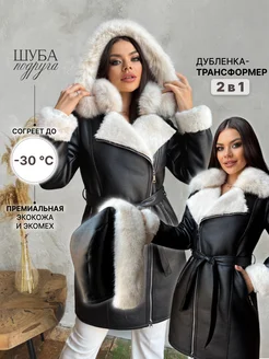 Дубленка зимняя экомех с воротником искусственная 2 в 1