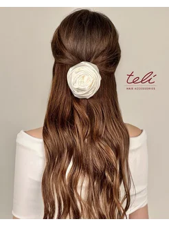 Резинка для волос атласная роза белая