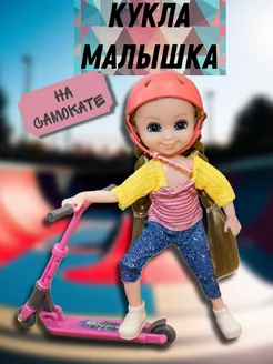 Кукла-малышка шарнирная 15 см на самокате