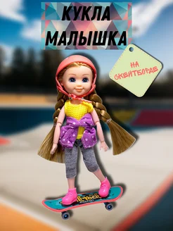 Кукла-малышка шарнирная 15 см на скейте