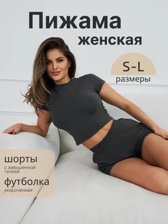 Пижама женская с шортами домашняя одежда хлопок однотонная