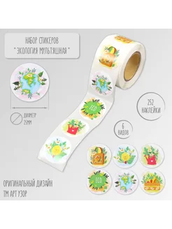 2 шт. Наклейка бумага "Экология. Мультяшная" d=2,5 см