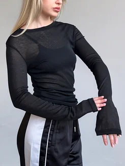 Лонгслив с длинным рукавом из полупрозрачной ткани