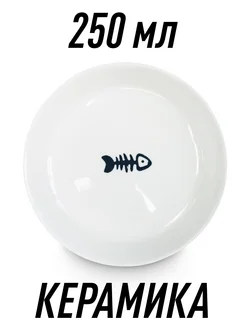 Миска керамическая для кошек с рисунком Скелет Рыбы, 250 мл