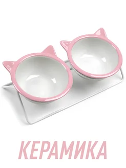 Миска керамическая для кошек Мордочка розовая, 100 мл