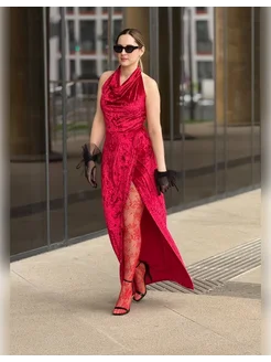 Платье вечернее блестящее длинное с глубоким вырезом