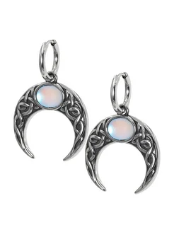 Серьги-конго "Лунница с Орнаментом", лунный камень