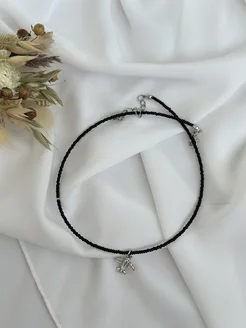 Чокер из бисера с розовыми бусинами и цветком из перламутра