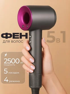 Фен для волос профессиональный маленький с насадками 5 в 1