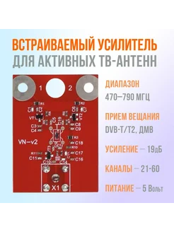 Антенный TV-усилитель, 470-862 МГц (ДМВ, DVB-T2), 19 дБ, 5В