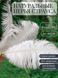 Декоративные натуральные перья страуса для рукоделия 40-45см
