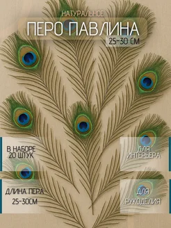 Декоративные натуральные перья павлина для рукоделия 25-30см