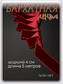 Лента бархатная 4 см, 5 метров, цвет бордовый