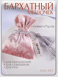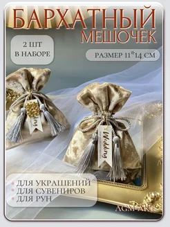 Мешочек бархатный для украшений, подарков, рун.11х14 см 2шт