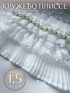 Тесьма декоративная жемчуг кружево плиссе 1,5 метра