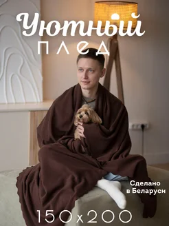 Плед 150х200 Коричневый флисовый покрывало на диван и кресло