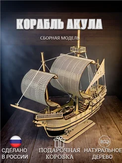 Конструктор деревянный 3д сборная модель корабля Акула