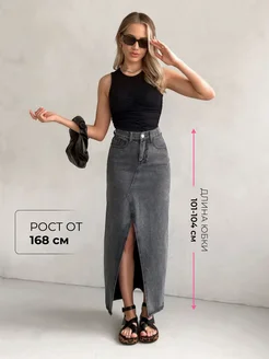 Юбка джинсовая длинная макси с разрезом