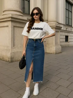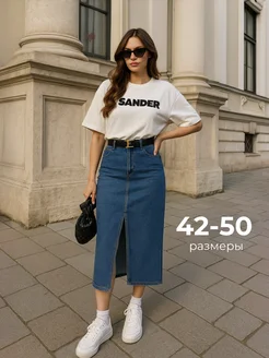 Юбка джинсовая миди с разрезом